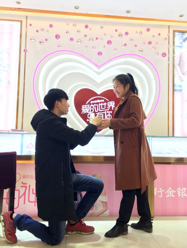 爱的世界此次进驻漯河,首次尝试大型情景浪漫求婚现场营销模式,采用粉色心形拱门、求婚主题墙、心形爱情走廊、爱情驿站、爱的表白角、恋爱花车、爱的世界定制跑车等极具品牌调性的爱情场景设置,打造了直击泪点的粉色梦幻求婚情景,这些全都是为爱的世界婚钻消费者准备的精彩求婚现场。当天,每一对情侣客户购买后可在嘉年华现场求婚,男生对女生的真爱表白,将被收录到密语珠宝盒中,现场求婚的照片和爱的表白视频都永久地存入爱的世界为情侣们准备的个人专属二维码爱的空间,成为最美好的爱的记忆永久珍藏。